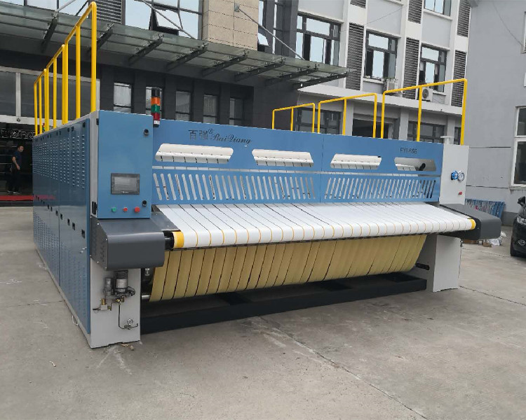 第二是百强高速烫平机,智能化自动输水装置,蒸汽压力适用范围大,可在气压为0.4—1兆帕下运行,采用6个滚筒直径为650mm,壁厚13mm的滚筒,更好的锁住温度,提升蒸汽效率,降低能源消耗。布草经过熨平机时,走S型通道,实现了布草的正反面熨烫,不仅熨平平整度高,熨平速度更高可达60米每分钟。重要零部件采用进口品牌,性能更稳定。
