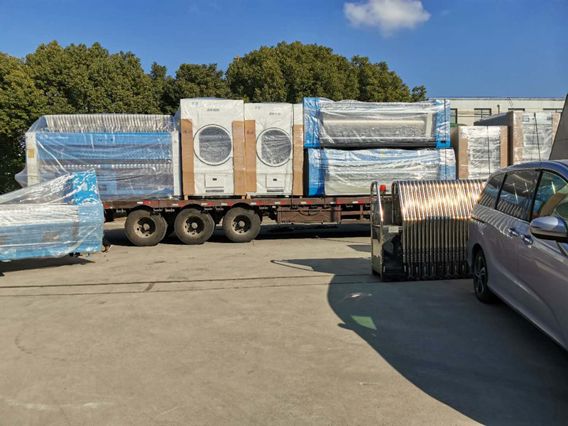 此次发货北京的产品有:3台100公斤洗脱机、2台100公斤烘干机、1台送布机、1台烫平机、1台折叠机。
