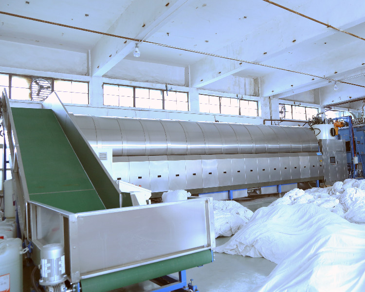 从大型工业洗衣机到烘干熨平以及后整理设备,百强都有生产,可以满足不同规模洗涤厂的需求,按照日洗量来配置不同的方案。
